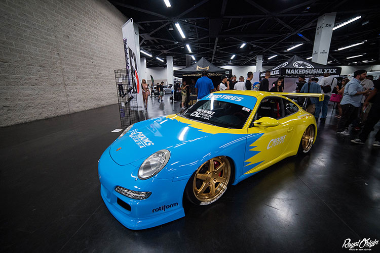 กลายเป็นรถแต่งอีกหนึ่งคันที่ดังเปรี้ยงปร้างแบบข้ามคืนเลยทีเดียวสำหรับ Porsche 997 ซึ่งจอดตระหง่านกลางงาน WekFest San Jose 2016 จุดเด่นที่เตะตาที่สุดคงหนีไม่พ้นการคาดสติ๊กเกอร์สีฟ้าเหลือง จะมองซ้าย มองขวา มองหน้า มองหลัง ก็พูดได้คำเดียวว่า นี่มันรถของ Spoon ชัดๆ! ...ผมก็ได้แต่แอบคิดในใจว่า ลุงอิจิชิม่า (ผู้ก่อตั้งและเจ้าของ Spoon ประเทศญี่ปุ่น) นอกใจรถขับหน้าอย่าง Honda ...แล้วเปลี่ยนมาเล่นรถเยอรมันแล้วรึ
