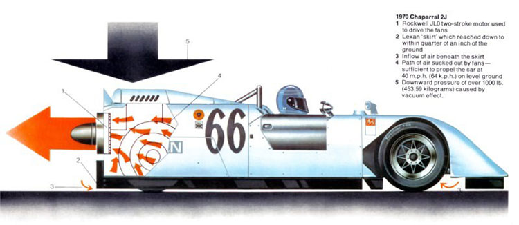 เทคนิคที่ว่านี้ ก็คือ Ground Effect (กราวน์ เอฟเฟค) นั่นเองครับ โดยหลักการของ Ground Effect สำหรับรถแข่งก็คือการสร้าง สุญญากาศ หรือ ความดันค่าลบ (Negative Pressure) ให้เกิดขึ้นในบริเวณ ใต้ท้องรถ ซึ่งจะส่งผลให้เกิดแรงกดอย่างมหาศาล ตัวรถจะถูกดูดอยู่กับพื้นราวกับว่าเป็นปลาซัคเกอร์เลยทีเดียว เมื่อรถมีแรงกดอย่างเพียงพอแล้ว ก็จะสามารถเข้าโค้งด้วยความเร็วที่เพิ่มขึ้น นอกจากนั้นแล้ว ความเสถียรของตัวรถก็จะเพิ่มขึ้นอีกด้วย